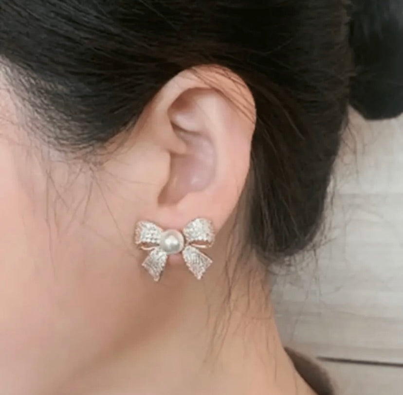 White Bow Pearl Earrings
